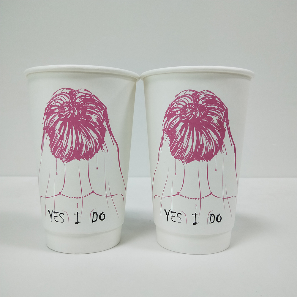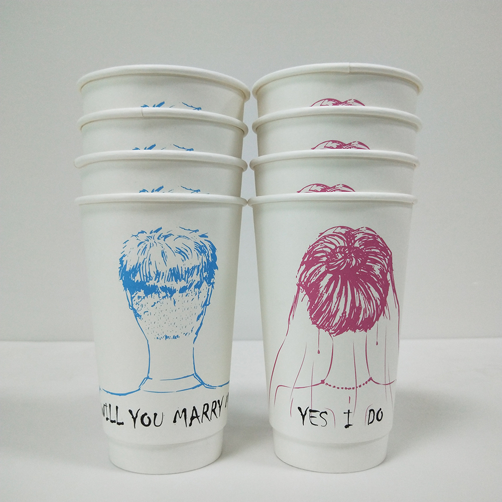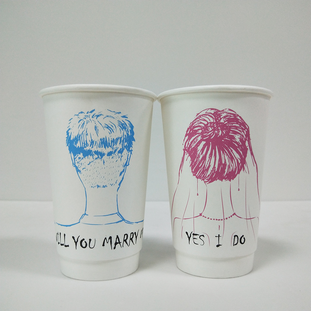 情侶圖案印刷奶茶紙杯500ml